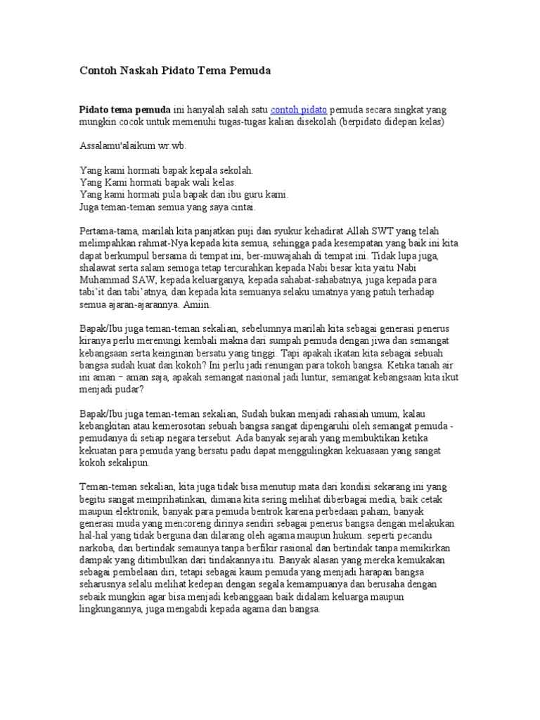 Pidato Tentang Pemuda Zaman Sekarang Gambaran from imgv2-2-f.scribdassets.com Pidato generasi pemuda mudi indonesia singkat. We did not find results for: Check spelling or type a new query. Maybe you would like to learn more about one of these?